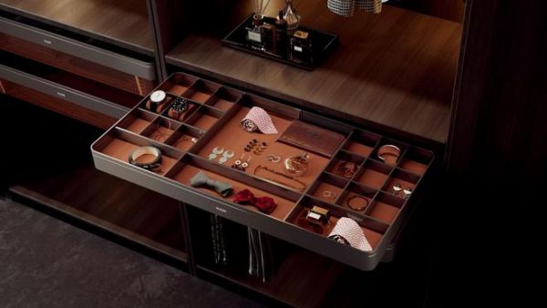艾斐系列采用航空级铝合金边框、水性氟碳漆、火欧泊TOGO皮革肌理,尖端拼接处使用一体折弯成型,遵循R=25的黄金比例;深入国人刚需家庭收纳研究,诺米重构屉内布局,进行全品类收纳划分。如多功能收纳盒、侧置收纳格、5.6MM超薄骨架,都是为了释放更多抽屉内空间,空间利用率提升20%,满足小户型空间下收纳,实现“美”与“用”之间的平衡。它契合诺米全屋五金同色理念,做到型材外观上保持同一颜色,保持家的设计整体性。无论是外观设计、还是功能应用,在契合全屋定制领域的特性上都做到了极致。