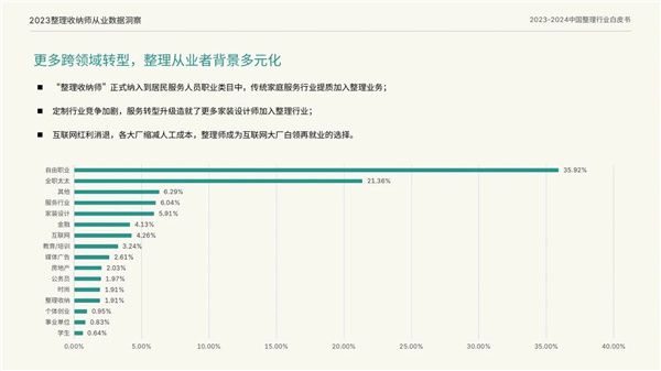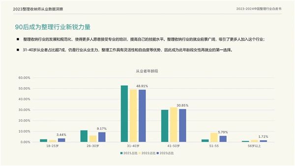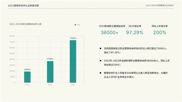 同时,2022年至2023年全国新增职业整理师36000余人,同比去年增长超过200%,这一惊人的增长速度进一步证明了整理收纳行业的火热势头。