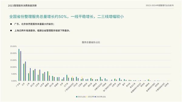 2023年,一线城市仍保持着平稳的增长态势,但二三线城市的增幅相对较小。这反映了整理收纳行业在地域分布上的不均衡性。