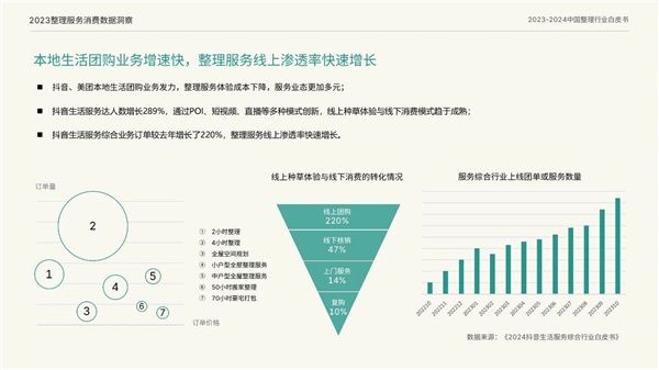 本地生活团购业务的增速迅猛是白皮书中的一个亮点。随着消费者对线上购物的依赖度不断提升,整理服务的线上渗透率也在快速增长。这意味着线上渠道将成为整理收纳行业的重要发展方向。