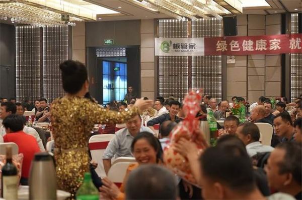 产品引领品牌发展,展现亮眼终端名片。本次晚宴活动共分品牌分享和庆功晚宴两个板块。活动伊始,鸿腾装饰罗董事长上台进行现场致辞,对全场参会者的到来表示了真诚热情的欢迎,亦对各位合作伙伴、朋友、家人十年间的倾情陪伴与支持表示了最诚挚的感谢,未来,鸿腾装饰将会带着感恩的心,继续与各位伙伴一起不断探索板材行业发展新方向,共谋发展新未来!
