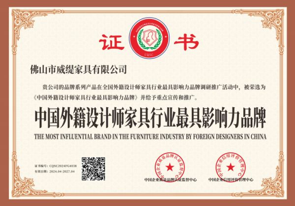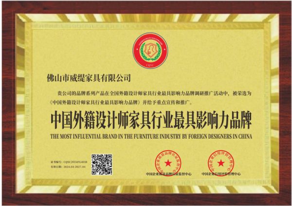 佛山威缇家具荣获外籍设计师家具最具影响力品牌