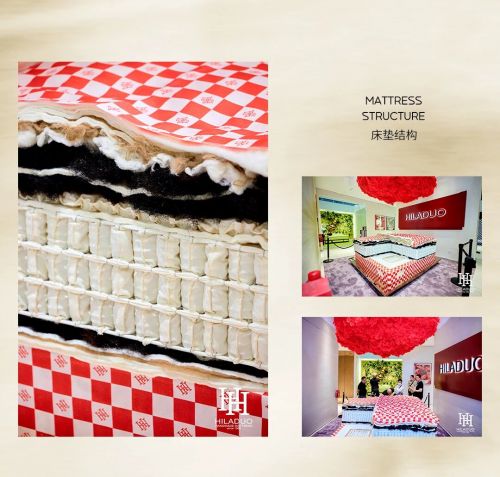 在“天然材质”专区,我们能看到品牌对全球顶ji天然原料的臻选与呈现。当指尖抚过马尾毛纤维,那细腻且充满韧性的触感,似有北欧草原的风在纤维间流转,每一丝都承载着自然的灵韵;触碰到阿拉善驼绒,其云朵般的蓬松与暖感包裹而来,恍惚间,驼群在大漠暖阳下悠然踱步的画面在眼前铺展。观众可近距离探究材质拼接的精妙工艺,体悟手工制作的独特温度,从而深刻感知品牌对天然材质近乎苛刻的甄选态度,以及手工床垫制作技艺的至臻境界。