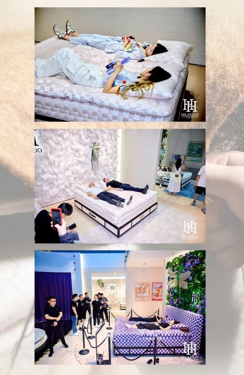 互动体验区备受瞩目,当观众平躺在床上,能清晰察觉到HILADUO[赫那朵]床垫与脊柱的完美贴合,宛如一双温柔且充满力量的手,在轻柔地支撑着身体,有效缓解脊柱所承受的压力;而在翻身的瞬间,出色的透气性便会被切实感知,身体的压力得以分散,肌肉那些容易疲惫的部位,也能时刻保持干爽,仿佛整个人都置身于自然通透的环境,直观且深刻地体会到使用HILADUO[赫那朵】床垫后,睡眠体验所实现的显著跃升。