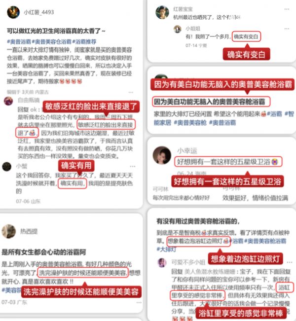 用户反馈显示,奥普美容舱浴霸的核心优势集中于“高效”与“多场景适配”两大维度。一位内蒙古用户提及,在使用约一个月后,晒后肌肤可见提亮;另有沿海地区用户反馈,其潮湿环境引发的皮肤过敏泛红问题,在坚持使用绿光模式后得到显著缓解,甚至因此闲置了家中原有的美容设备。四川一位用户特别指出,产品提供的黄光模式具备良好的情绪舒缓效果,同时制热速度远快于传统浴霸。