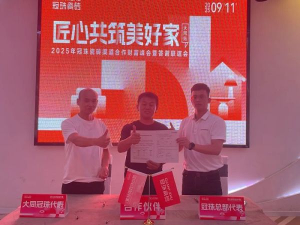 ▲9月23日,商州冠珠瓷砖城市英雄俱乐部正式成立!本次活动现场与35家合作伙伴达成签约。