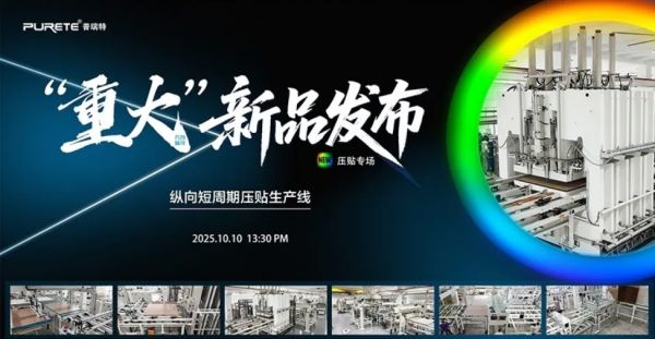 2025年10月10日下午,普瑞特顺德总部现货开放参观,带来4700吨7*9呎纵向短周期压贴生产线,为各类饰面板企业提供了全新的压贴方案,诚邀合作伙伴莅临参观考察。