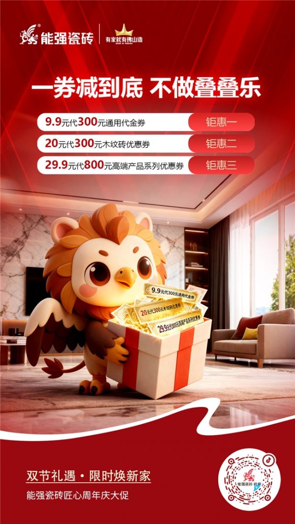【双节礼遇·限时焕新家】能强瓷砖匠心周年庆大促火热进行中~