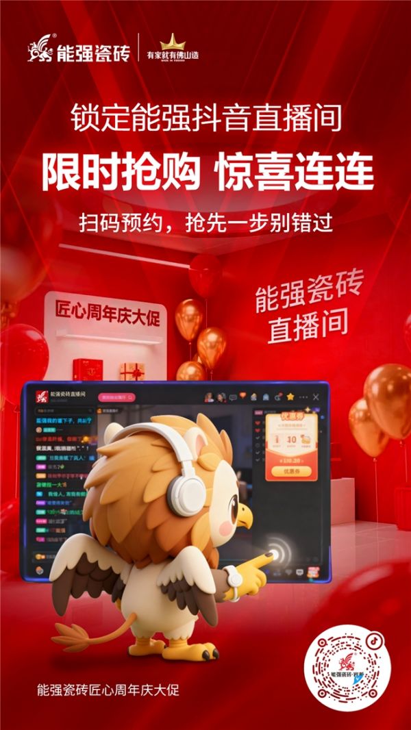 线上抢购:关注能强瓷砖官方抖音双节大促直播专场,一键锁定优惠价!