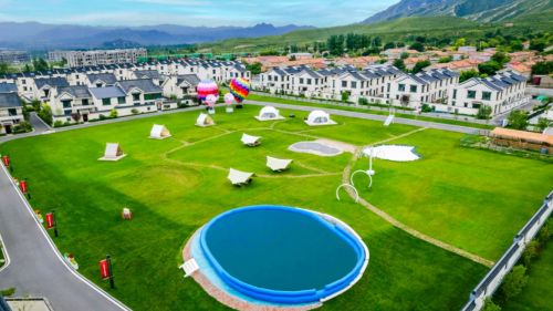 黄阳小镇·春风里的居住设计,尽显对品质的执着。首期13000平方米土地,容积率仅0.56,打造出稀缺低密社区。联排产品包含122平方米三居两卫和150平方米四居三卫户型,通过“赠送70平方米花园+30平方米挑空”设计,实际使用面积扩展至220平方米。每户配备私家花园、观景露台及可选配的私汤泡池,实现“户户有景、家家有院”的理想。交通方面,项目距北京城区约130公里,京藏高速、京新高速、京张高铁等构成1小时通勤圈;教育、医疗资源逐步完善,社区内商业街区已引入品牌超市与特色餐饮。