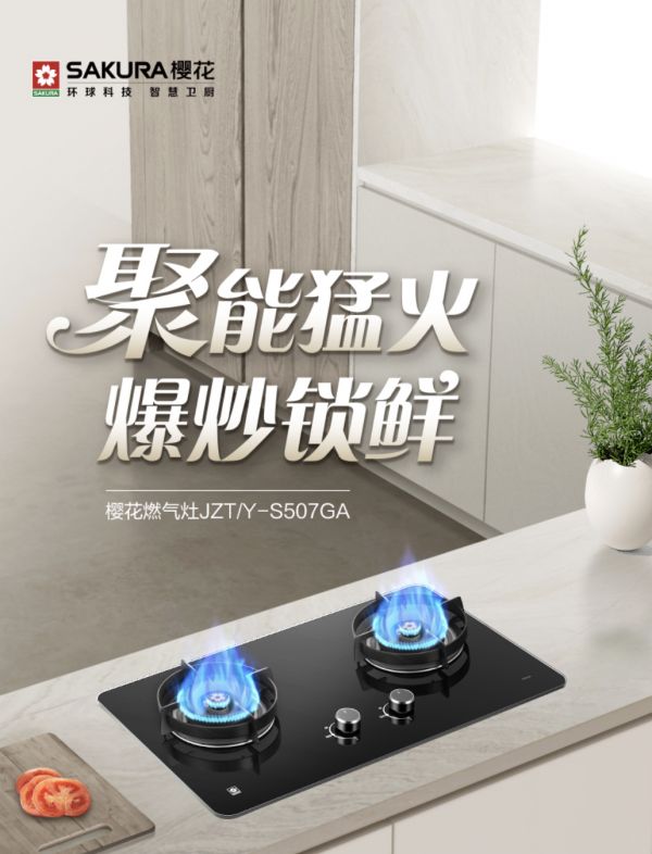 樱花燃气灶S507GA以巨焰猛火,让平凡的下厨时光也充满乐趣,在忙碌日常中,依然能够品味生活的精致。