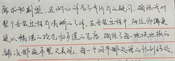 有人说,地板是家的核心支撑,它不仅承载着生活的温度,也记录了日常的足迹。一份高端而舒适的地板体验,既来自产品本身的卓越品质,也离不开专业安装服务的全程护航。在行业普遍尚未重视安装服务对地板使用体验的决定性影响时,作为高端实木地板的领导品牌,天格中国高端实木地板始终致力于通过不断提升服务质量,为用户打造高端的地面体验。正因如此,天格也赢得了众多用户自发的肯定与赞誉。更难能可贵的是,当今互联网时代下,仍有许多用户不约而同地选择手写信的方式,为天格的安装工程师团队写下真挚的表扬——这些质朴文字的背后,映射出的正是专业与匠心的深刻体现。