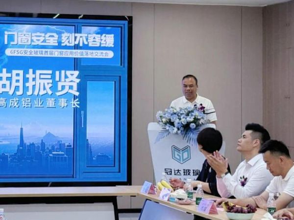 随后,广东省门窗协会供应链专委会会长、高成铝业董事长胡振贤围绕“门窗安全·刻不容缓”发表致辞,深刻阐释了门窗安全对家庭与社会的重要性,并提出三点倡议:一是坚守安全为行业发展根本;二是加快推广如6FSG安全玻璃等先进技术;三是携手共建协同发展的产业生态。