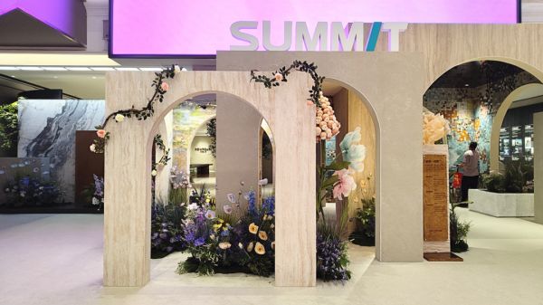 李莹进一步指出,新明珠绿材基于石晶等绿色建材,表面可复合任意装饰,使产品兼具防水、防火、抗冲击等性能与多样外观。事实上,萨米特展厅内的许多材料就是通过创新定制开发而得来,极大地拓宽了新明珠绿材的应用视野。