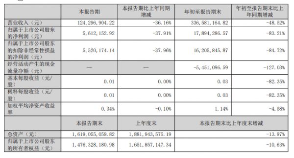 其中第三季度,公司营业收入为1.24亿元,同比下降36.2%;归母净利润为561万元,同比下降37.9%。