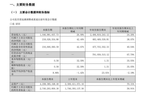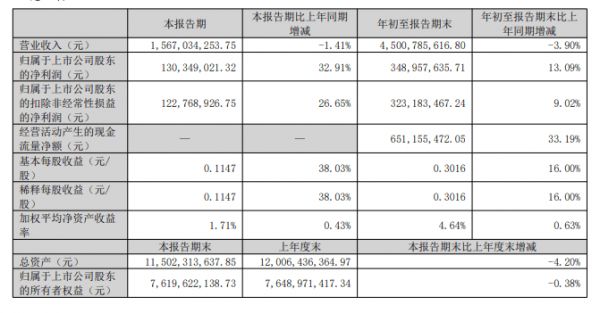 其中,第三季度营收约52.11亿元,同比增长6.5%。归母净利润约5.18亿元,同比增长11.99%。
