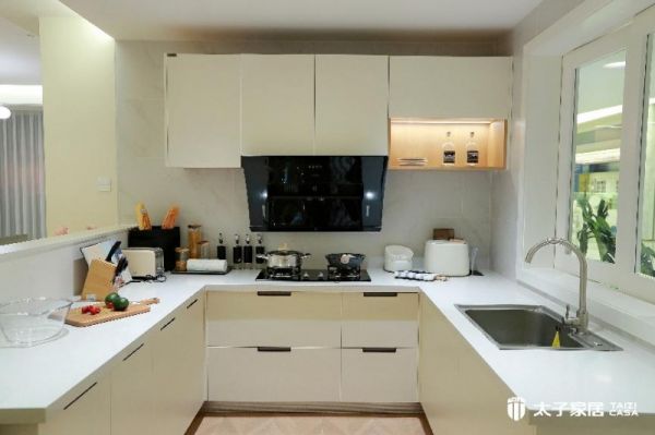 小户型或者异形户型,如何低成本实现空间变大呢?在积累了大量装修案例后,太子家居针对不同户型厨房都有定制方案。厨房宽度允许,U型布局是效率最高的选择,操作台面长,储物空间也最大;I型布局适用于狭长厨房,将所有功能区沿一面墙排列,简洁流畅;甚至可以做成开放式厨房,与客餐厅连为一体,但注意选择大吸力油烟机,避免油烟问题。小面积收纳,太子家居建议柜体向上做通顶吊柜,将不常用的物品置于顶部,地柜内部分区,多用抽屉式拉篮,比普通隔层更好用。如果你的厨房是特殊的户型图,或者你更倾向于某种风格,太子家居都会从风格、功能和具体需求来出定制方案。