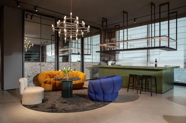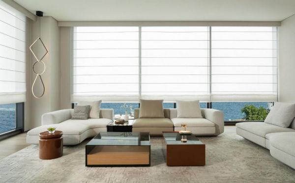 电梯门开启,经典“筷子图”映入眼帘。透过通高落地窗,海天一线成为空间的天然背景。占地约800㎡的 HC28 maison 大连全景体验店,以“全景设计”为核心理念,打破传统家具展陈逻辑——不再以单品陈列为主,而以生活场景串联空间叙事。