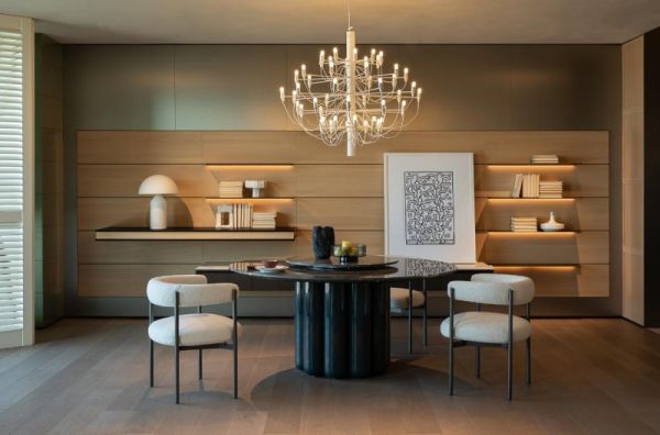 展厅由七个完整生活场景与一个 HC28 Café 体验区构成,从家的功能出发,延展出不同人群与生活方式的多维表达。在这里,有孩家庭的现代生活以柔和木色和温润材质描绘出秩序与温度;艺术居所以光影与比例构筑生活的舞台感;思考者的书房回归理性与静谧;都会夫妻的居所在共享与独立之间平衡优雅;度假之家将左岸护墙系统与平行空间系统融为柔和立面,让家有松弛的节奏;海景大宅以开阔尺度与沉稳材质呈现格局与气度;而展厅中央的 HC28 Café,则让人放慢脚步,在一杯咖啡的时间里体会设计的温度与生活的柔软。