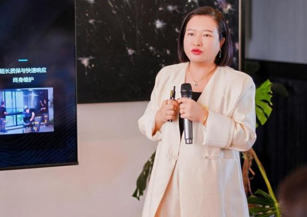 圣米兰门窗品牌总监黄涌娟系统阐述了圣米兰品牌发展的三大战略板块:产品体系、设计IP与生态运营。她介绍,圣米兰以"建筑外立面系统解决方案"为核心,依托6万平米生产基地与6大产品系统,严格执行高于国标的质量标准。在设计师生态建设方面,品牌通过设计IP、国际游学、专业课程及奖项申报等多元渠道,为设计师提供全方位成长支持。她特别强调,圣米兰创新推出"28步交付法"与总部全程护航机制,确保项目从设计到落地的完整闭环,真正实现"设计驱动产品进化"的品牌理念。