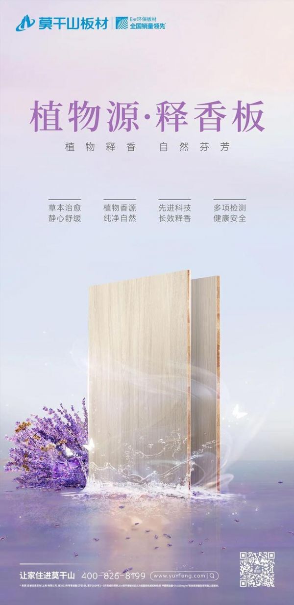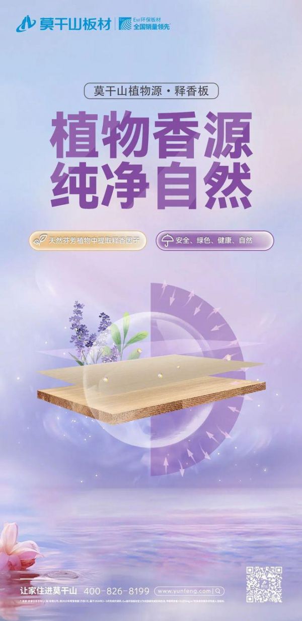 作为新一代释香功能型产品,植物源·释香板满足消费者对于绿色、健康、治愈性的情绪价值需求。莫干山植物源·释香板将草本植物薰衣草的治愈之力用于日常生活中,为生活居所提供舒适自然的植物清香,构筑独一无二的家装底色,舒缓身心又治愈情绪。