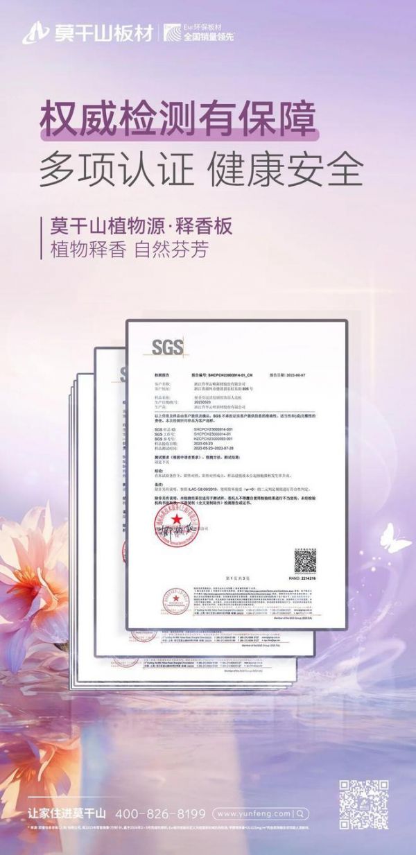 为了保障消费者的健康安全,莫干山板材经反复多项实验检测,证明植物源·释香板无毒、无刺激性、0致敏率,对身体及环境无潜在危害,让你放心享受宅家的每一次呼吸,享受家的温馨与美好。