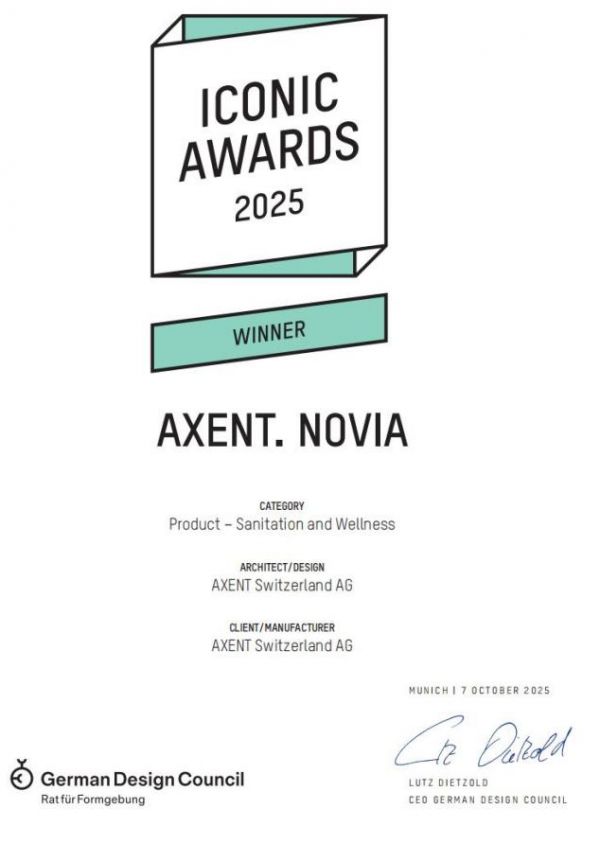 NOVIA全景智慧浴室斩获国际殊荣,更加佐证了AXENT恩仕「智慧改变生活」的品牌理念。未来,我们将持续深耕设计与技术的融合,以科技赋能卫浴健康,为全球用户打造更具温度的现代卫浴体验。