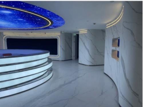 热弯后的岩板可以应用于多种场景,如圆形穹顶、回廊、弧形背景墙、圆包柱、旋转楼梯等,为建筑和室内设计提供了更多独特的设计美感。