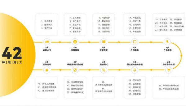 飞宇节能气候门窗联合门窗帮,率先制定并严格执行42步门窗标准化施工流程,成为整个门窗行业安装交付工序的参考模板。飞宇制定行业最严格的安装工序,同时开创行业最前沿的安装工法。