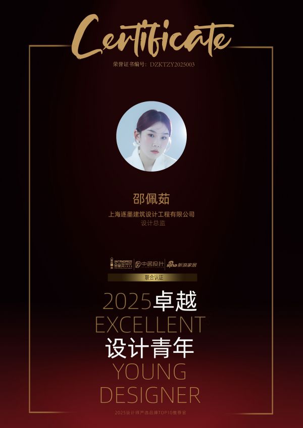 经主办方严格评审,本届荣膺“2025卓越设计青年”称号的是——上海逐墨建筑设计工程有限公司设计总监邵佩茹。