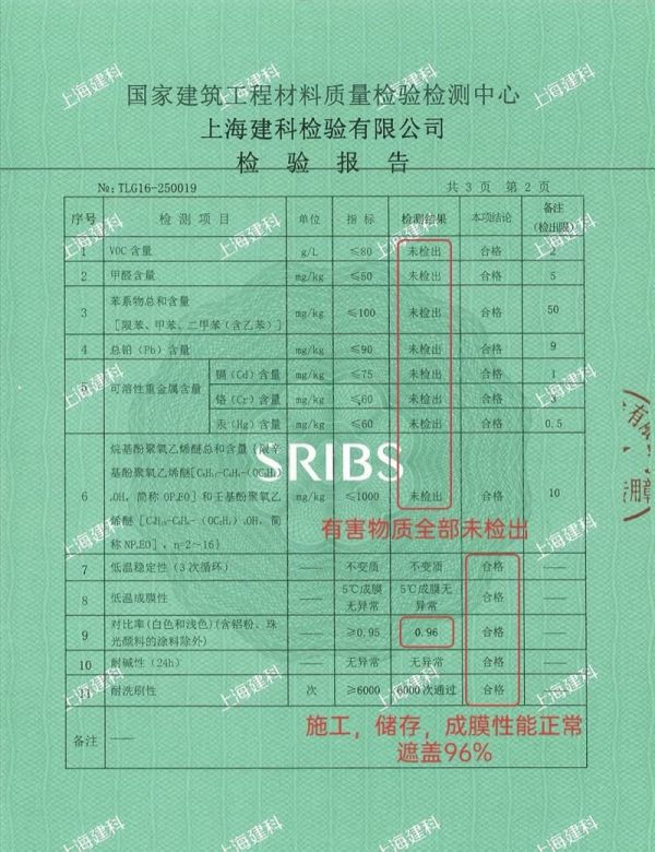“未检出”意味着在检测设备的极高精度下,这些对人体健康构成潜在威胁的有害物质含量低至无法探测。这远非仅仅“符合标准”而已,它代表了产品配方的纯净与技术的先进性,为消费者,尤其是有儿童、老人及过敏体质成员的家庭,提供了近乎“零负担”的墙面保护。