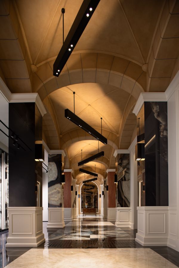 升级后的伊派・爱马仕杭州旗舰店,以“宋韵遇见古罗马”为叙事线索,将宋式美学的核心特质与意式设计的精工细节融入每一处空间。品牌以精准切割与拼接工艺,将《营造法式》榫卯智慧融入瓷砖应用,既致敬杭州南宋底蕴,更以产品为载体诠释“融”的核心理念。