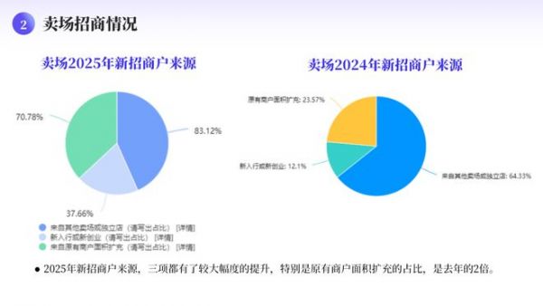 2025年新招商户来源,三项都有了较大幅度的提升,特别是原有商户面积扩充的占比,是去年的2倍。