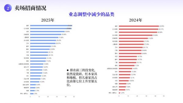排在前三的没变化,依然是瓷砖、红木家具和地板。但儿童家具占比由第七位上升至第五位。