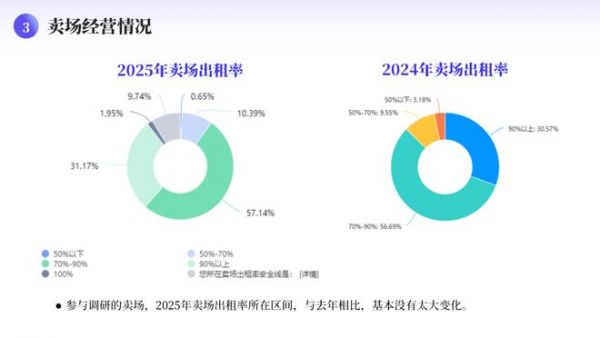 参与调研的卖场,2025年卖场出租率所在区间,与去年相比,基本没有太大变化。