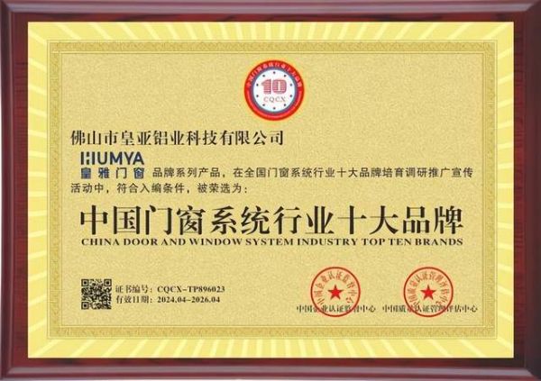 跻身“中国门窗系统行业十大品牌”,彰显皇雅门窗已稳居行业第一阵营。这一地位的确立,进一步强化了其门窗一线品牌的认知基础。