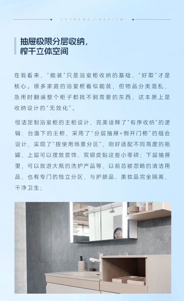 家居达人的极致收纳测评:看恒洁定制浴室柜治愈卫浴“杂乱焦虑”