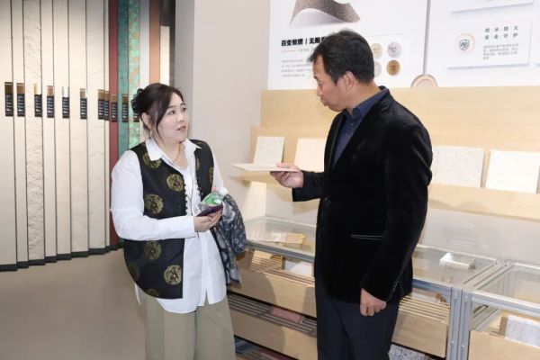 新明珠集团副总经理、新明珠绿材执行董事李莹(左) 介绍产品
