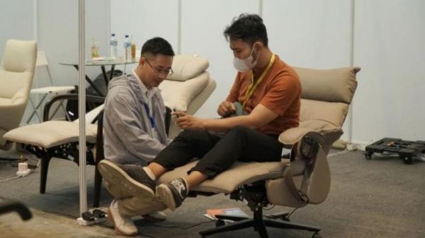 中山国颐家具:“展会现场今天客人很多,样品全卖掉了,就是觉得自己当初选的展位位置不太好,考虑复购并选择大摊位”
