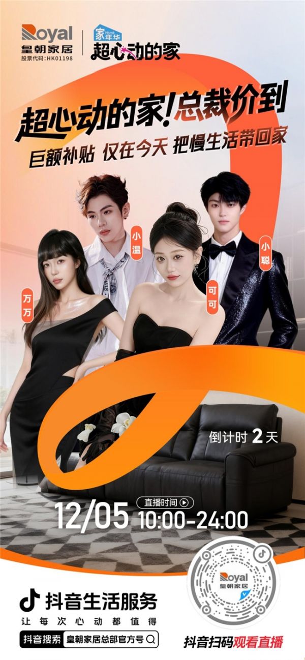 皇朝家居“总裁价到”年度直播盛典即将开启,携手抖音生活服务解锁超心动的家