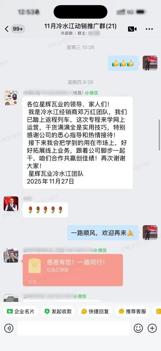 2025年11月,为助力湖南冷水江市新加盟伙伴快速打开市场局面,星辉瓦业总部精准施策,派遣终端赋能团队深入一线,开展定制化深度协同,最终成功抢占市场高地。