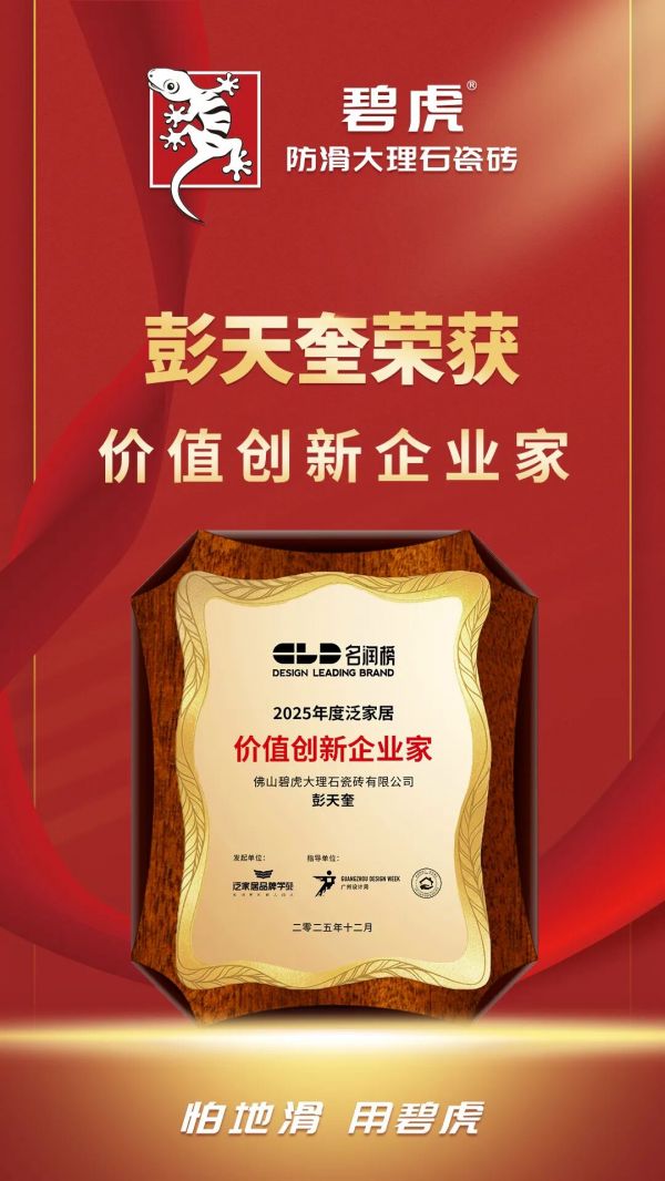 这一荣誉不仅是对彭天奎先生的认可,更是对碧虎多年来坚持“安全人居” 理念的高度肯定。未来碧虎将继续兼顾安全与美学,为全球人民提供高品质防滑大理石瓷砖。