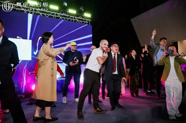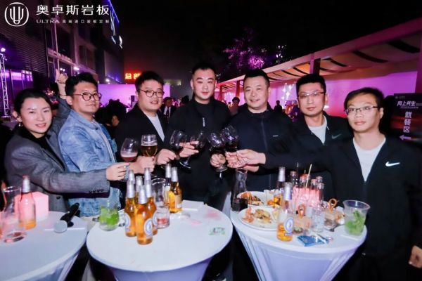 随着对奥卓斯岩板的祝福声声落下,总部启幕的盛典缓缓礼成。而当晚的“奥卓斯之夜”则点亮了行业的夜空,光影流转,觥筹交错,在充满现代感与奢适美学的空间里,嘉宾们于愉悦的氛围中释放自我,畅叙未来。思想的火花在轻松对谈中迸发,关于设计趋势、材料美学与生活方式的感悟在此自由流淌。奥卓斯的征程,此刻才真正向着自然与美学徐徐展开。