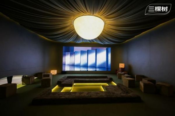 “序|归心之路”以山石肌理墙面与光影叙事墙开篇,瞬间隔绝展会喧嚣;“绿野之庭”的草垛座椅区成为设计师交流聚集地;“漆阁”中传统大漆与螺钿家具的搭配,配合苔藓间浮动的月影光球,唤起无数观者对家族记忆的共鸣。而“土之间”“水厅”的空间格局,更将自然肌理与情感表达融入细节,让“亲爱”的多元内涵转化为可触摸的人居体验。