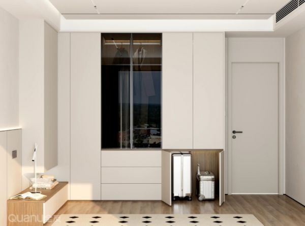 精准规划内部高度,轻松容纳不同尺寸的行李箱,对开柜门让取放一步到位,鸡肋角落秒变收纳宝地。