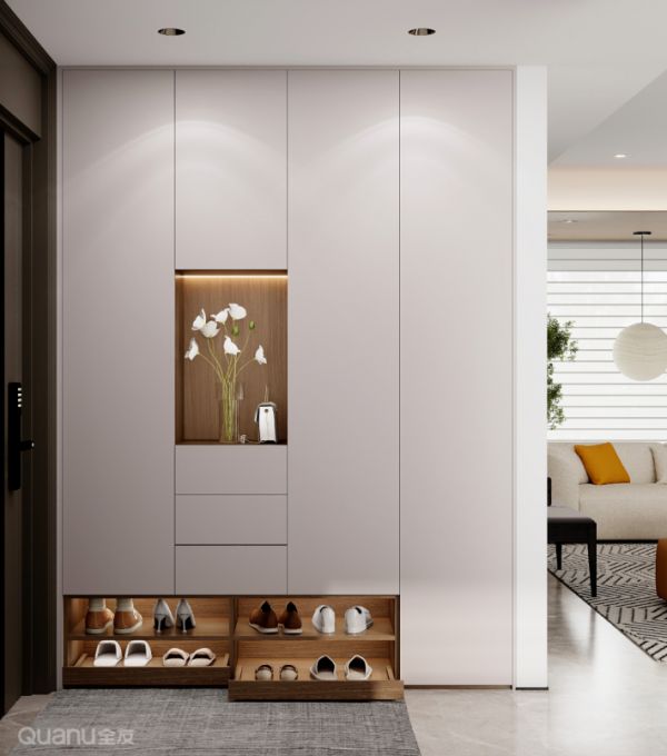 玄关太小鞋子总堆满地?可以在鞋柜底部搭配踢脚抽。