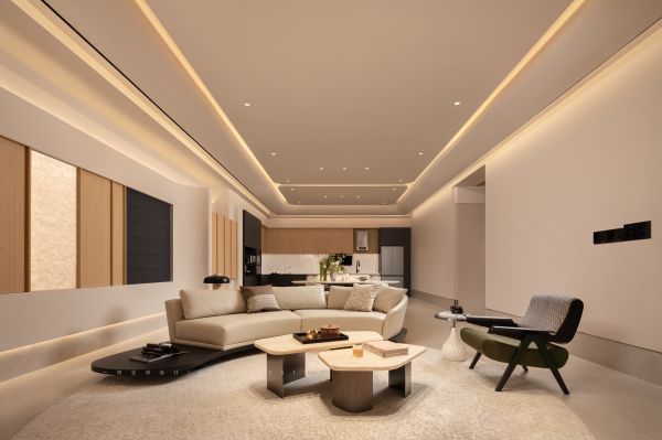 步入馆内,首先被一种均匀而静默的舒适感所包裹。室内温润宜人,空气清新,全然没有传统空调的吹风感或新空间的异味。这种“无感”的舒适,正是AI-LiNK智慧五恒系统的持续精准调控:通过遍布全屋的传感器实时监测环境数据,AI智慧中枢主动协调设备进行秒级响应,实现恒温、恒湿、恒氧、恒洁的稳定状态。当记者与接待人员在客厅交谈时,系统因监测到二氧化碳浓度上升而自动加强新风,整个过程静谧无扰。