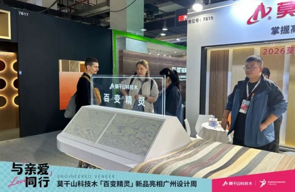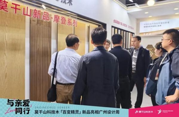 莫干山科技木携2025年新品亮相广州设计周,以“百变花色,饰面美学,赴一场当代人居美学之约”为主题,将自然质感与创新科技深度融合,打造出沉浸式的产品体验空间,开幕即成为全场焦点,吸引大批设计师、采购商及参展观众驻足品鉴、洽谈合作。