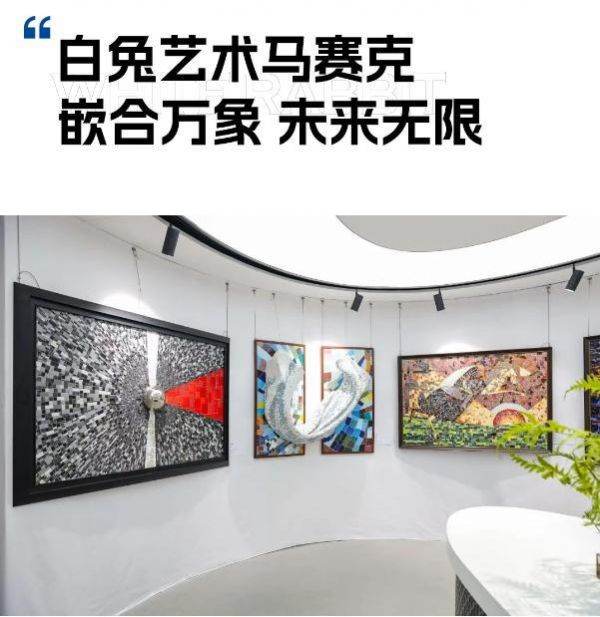 作品中最流动绚烂的釉色表现,离不开白兔瓷砖提供的卓越釉料技术与丰富的马赛克产品体系 的支持。作为全球花色品种较为齐全的马赛克生产基地之一,白兔瓷砖为创作者提供了稳定、高品质且极具表现力的材料基础,极大地拓展了他们的创作边界。此次展览中,瓷砖得以从基础建材升华为纯粹的艺术表达媒介,正是 “产业与文化艺术深度融合” 创新路径的完美体现。白兔瓷砖的艺术马赛克产品,以其卓越的装饰灵活性与艺术表达力,成为设计师手中实现无限创意的关键载体。
