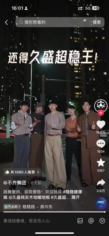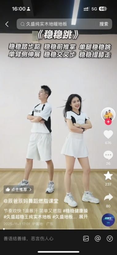 从达人到素人,从年轻人到长辈,久盛“稳稳健康操”连接起了不同年龄、不同背景的健康追求,这不仅是一场运动,更是一种生活态度:健康不需要复杂化,稳定才是长久的根基。